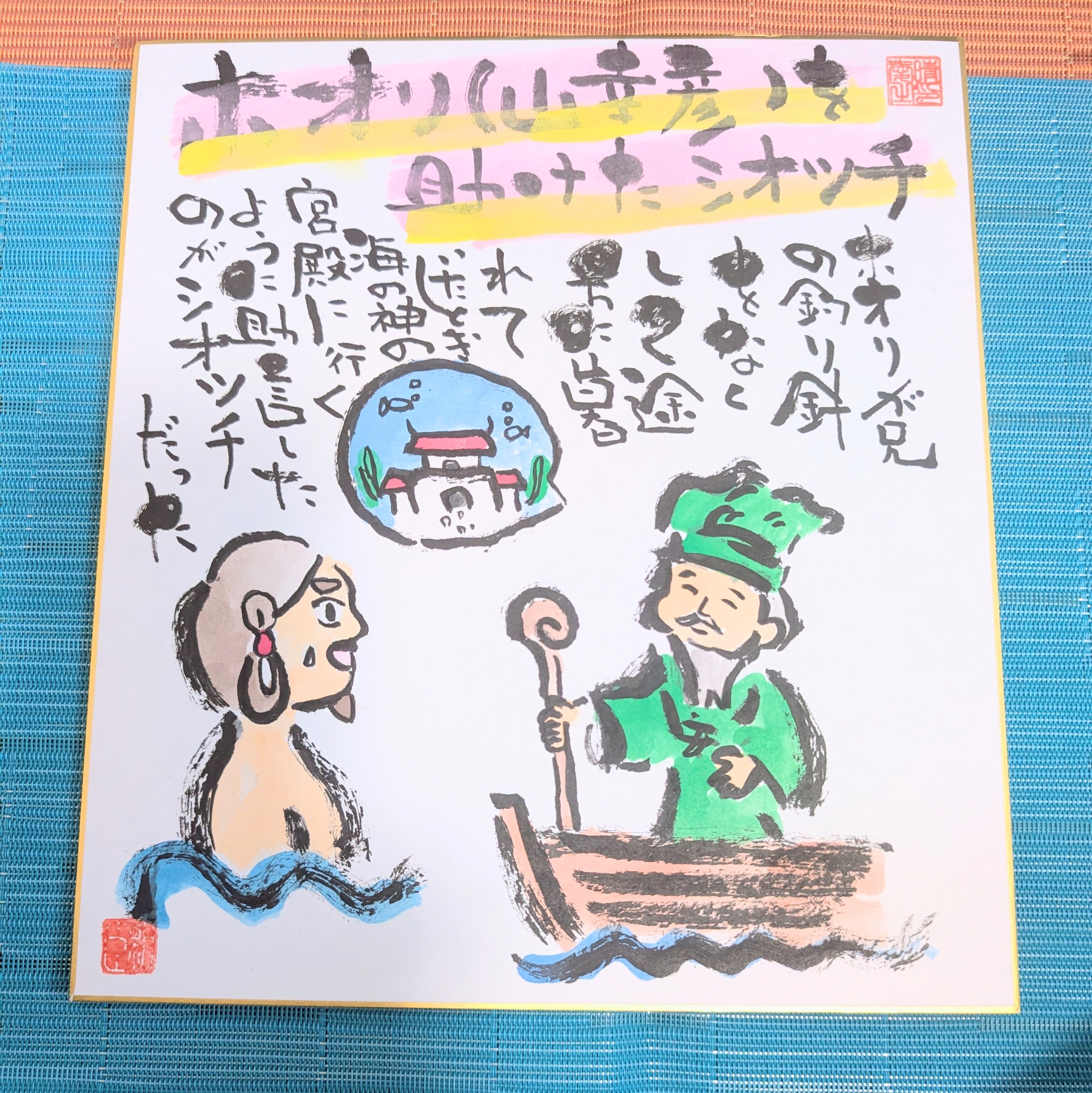 筆アート作品 神話の世界「ホオリを助けたシオツチ」